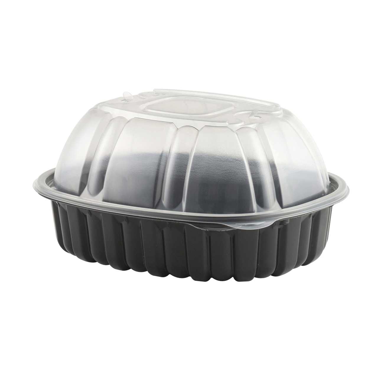 Black PP Microwavable Chicken Roaster Take-Out Container with Dome Lid - 9.38" X 7.45" X 4.5", 170 per Case By Anchor Packaging
