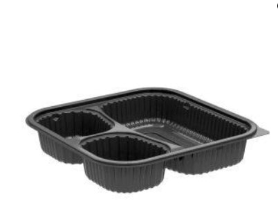 Black Base Plastic Container 3 Compartment, 8.5'' x 8.5'' x 1.78'', 21/6/6 Oz - 300 per Case By Anchor