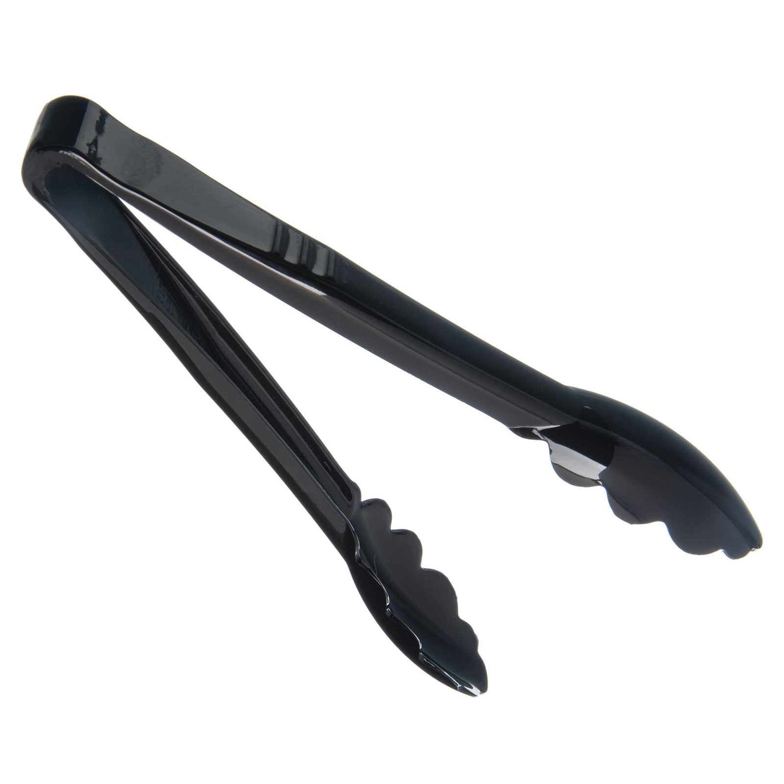 8.85", Black, Acetal, 1-Piece, Scalloped, Utility Tong