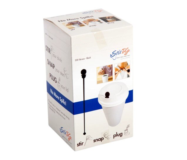 AmerCare Royal’s Black Plastic Stir N Plug Stirrer is a practical and convenient accessory for coffee service. With a secure snap-fit design, it prevents spills and splashes while maintaining beverage warmth, keeping drinks hotter up to 40% longer. Combining stirring and spill-prevention in one tool, this stirrer is the perfect addition for coffee shops, cafés, and on-the-go beverage providers, ensuring customers enjoy a safe and satisfying coffee experience.