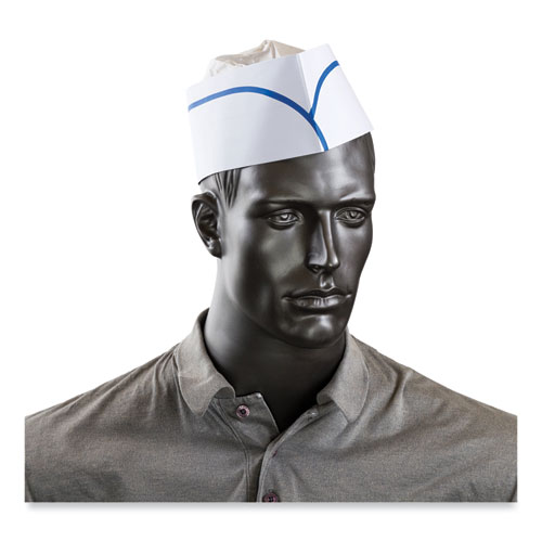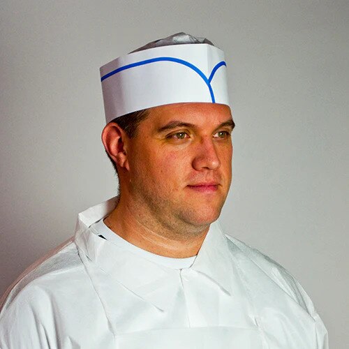 Maintain a clean, polished, and professional appearance in your foodservice operation with the White / Blue Strip Paper Forage Cap. Lightweight and breathable, this traditional cap style adds a touch of classic uniformity while keeping hair securely tucked away, a must-have for food handling and preparation areas. Designed for disposable use, this cap offers sanitary convenience without the hassle of washing or maintaining reusable alternatives. The adjustable fit accommodates most head sizes, and its subtle blue stripe provides a clean visual accent that aligns with industry aesthetics. Whether you run a fast-paced kitchen, staff a catering event, or manage a deli counter, these forage caps are an efficient, hygienic solution that helps your team stay compliant and look the part.
