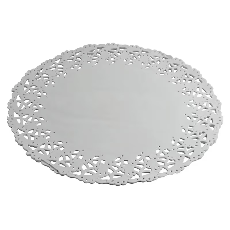 The 10-inch Paper White Lace Round Doily is the perfect addition to any bakery or dessert display, offering an elegant way to present cakes, cupcakes, pastries, and other baked goods. Made from durable, high-quality paper, these doilies provide a decorative touch while protecting serving surfaces from grease and crumbs. The intricate lace pattern enhances the visual appeal of cakes and desserts, making them stand out during events, catering services, or in a bakery display case. With 500 doilies per box, this product offers excellent value for businesses that want to provide a polished, professional presentation for their baked goods.