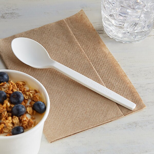 PLANT-BASED MATERIAL — Made of plant starch (PSM) and composed from 80% renewable materials, this spoon is a great environmentally friendly alternative. It's perfect for showing your patrons your eco-friendly practices and keeping your business green.