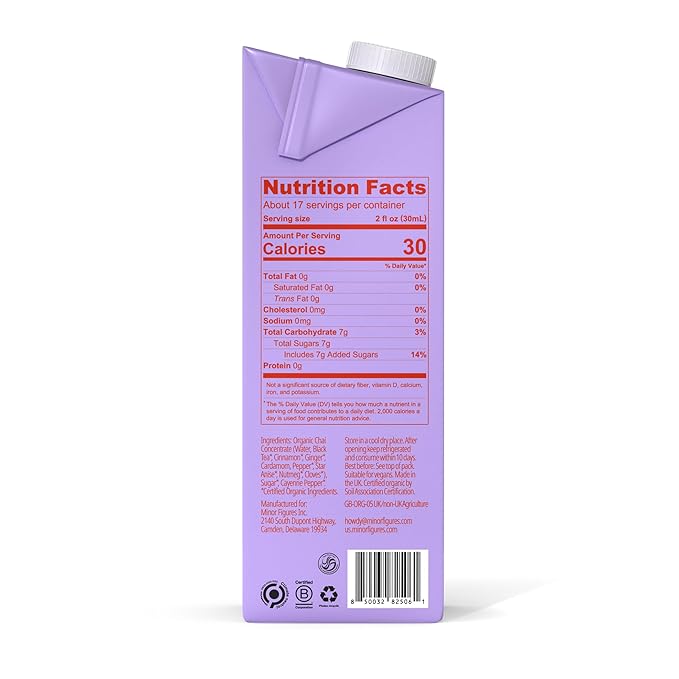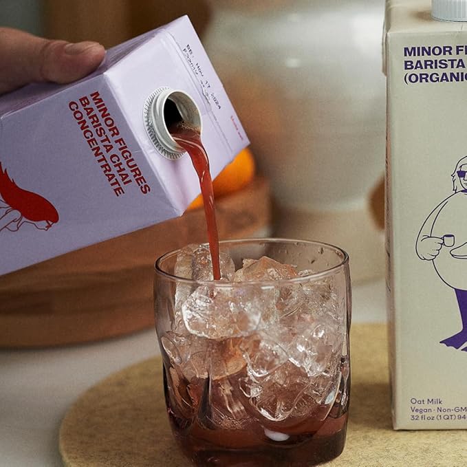 Effortlessly create delightful chai lattes with this Minor Figures Barista organic chai concentrate! This specially formulated chai concentrate was created by baristas for baristas to quickly and easily craft high-quality chai tea lattes with bold flavor and a silky, creamy mouthfeel. Simply mix 1 part concentrate with 4 parts milk for a creamy and delicious chai tea latte, or 1 part concentrate with 3 parts milk for a spicier flavor. It can be made with steamed or cold milk and served hot or iced for year-round enjoyment that will bring a smile to your patrons' faces no matter the season! Offer it with milk alternatives such as Minor Figures Barista oat milk (sold separately) for an inclusive option for guests with dietary restrictions.