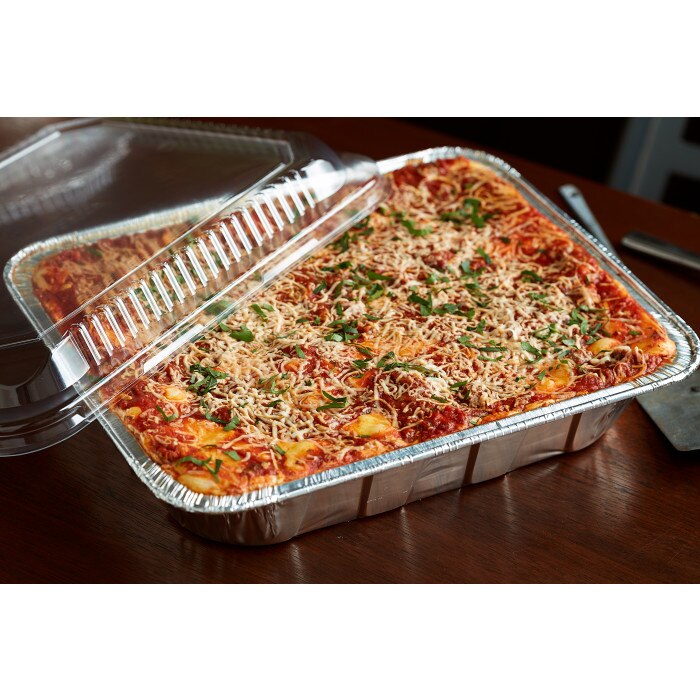 Silver Half-Size Deep Aluminum Steampan Table 40 Gauge, 12.75'' x 10.37'' - 100 per Case By Pactiv Evergreen