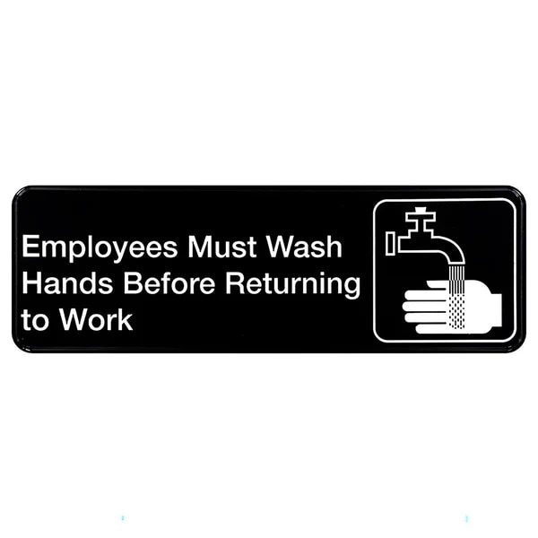 Black and White Employees Must Wash Hands Before Returning to Work Sign - 9" x 3", Each By Tablecraft Products